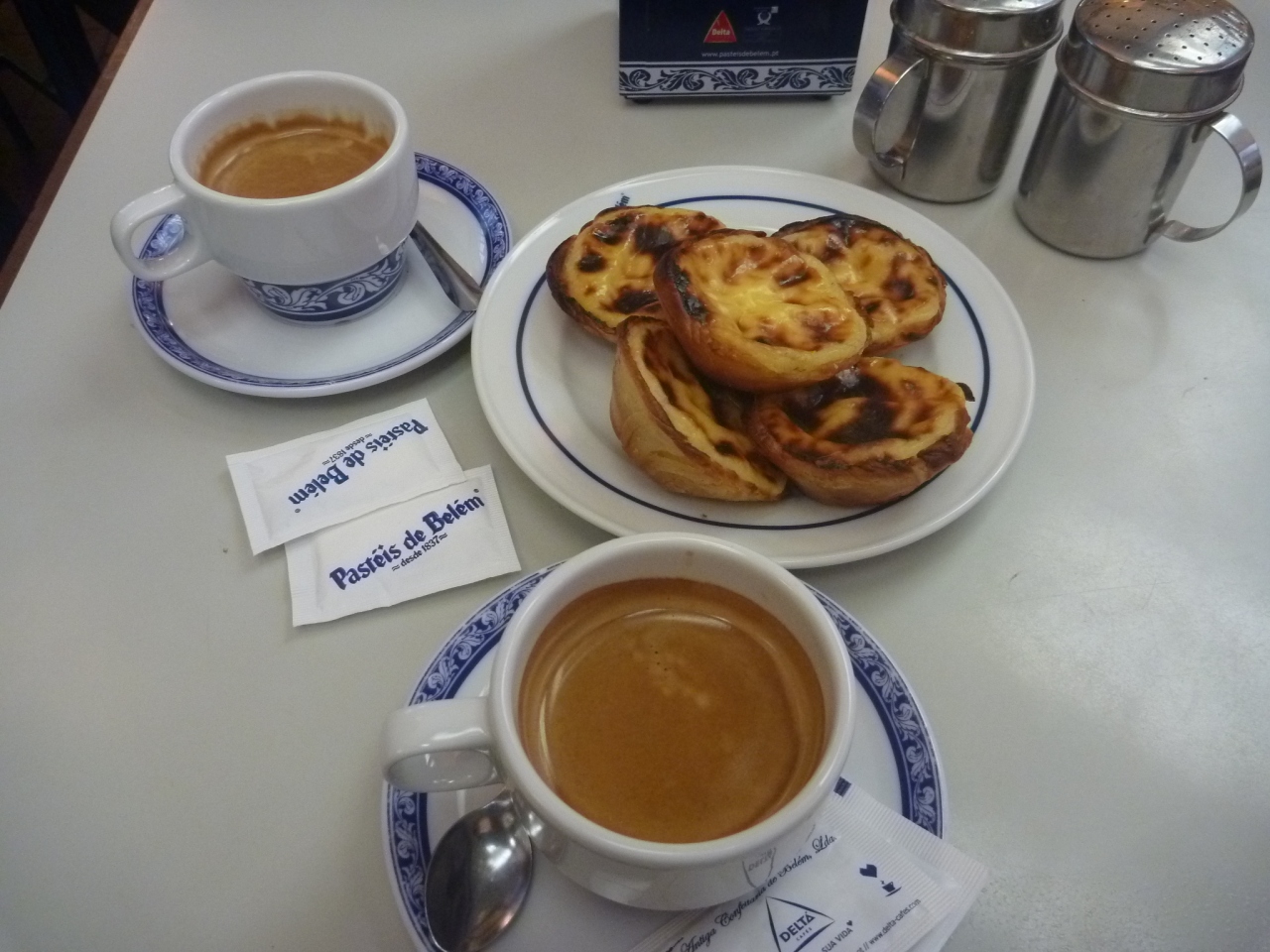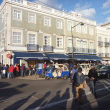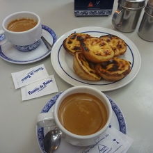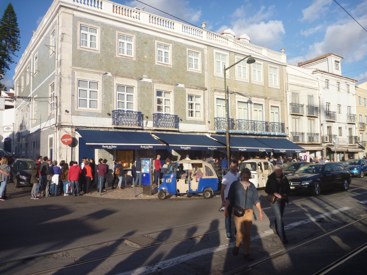 ジェロニモス修道院のすぐ近くで、お店の前に行列ができているので、見つけるのは簡単でした。その行列は、店舗先のお持ち帰りのコーナーの行列で、喫茶のほうでゆっくりコーヒーを飲みながら食べたいと思っていたので、店内に入って行くと、途中にもテーブルはあるのですが、一番奥まで行くと、テーブル席の順番待ちの列があって、そこに並びました。