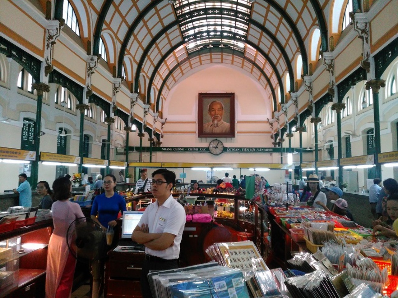 1890年頃に建てられ現在も郵便局として使われています。高校生や大学生が卒業や修学旅行の記念撮影場所として利用してました。建物の中では、お土産物のポストカードが販売されており、スタンプを買ってハガキ出してみるのも記念になりますよ。因みに絵ハガキは5000ドン(25円)から、日本までの切手代は10500ドン(50円)です。