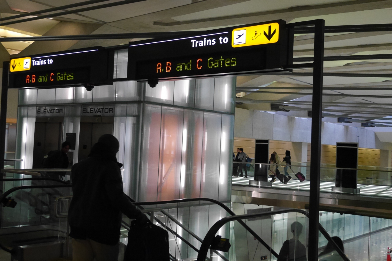 TSA Pre✓が無い場合、セキュリティーはかなり厳しく行われます。ターミナル間の移動は列車を使い、エスカレーターで上下しながら乗降口とゲートを移動します。