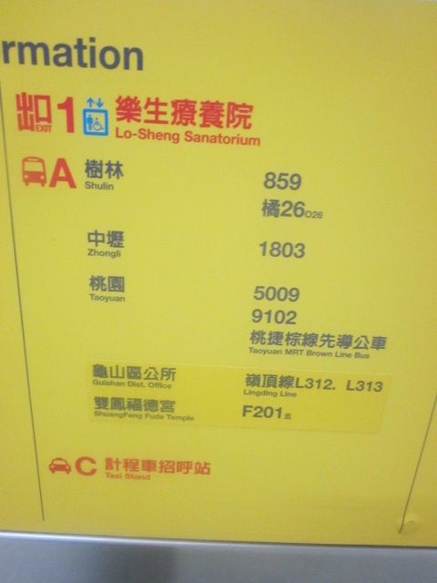 MRTオレンジライン廻龍線の終点駅ですが、ここで注目すべきはその立地で、駅自体はまだ新北市域内にありますが、すぐ傍はもう桃園市域となります。ということで、桃園方面へのバス路線が充実しているのもこの駅の魅力で、桃園・中歴(正確には土偏付き)・樹林といった台鉄の駅までも行くことができますので、台北都心部と桃園空港とを一風変わったルートで移動したい、というマニアックな方には、色々とバリエーションが楽しめてお勧めな駅です。