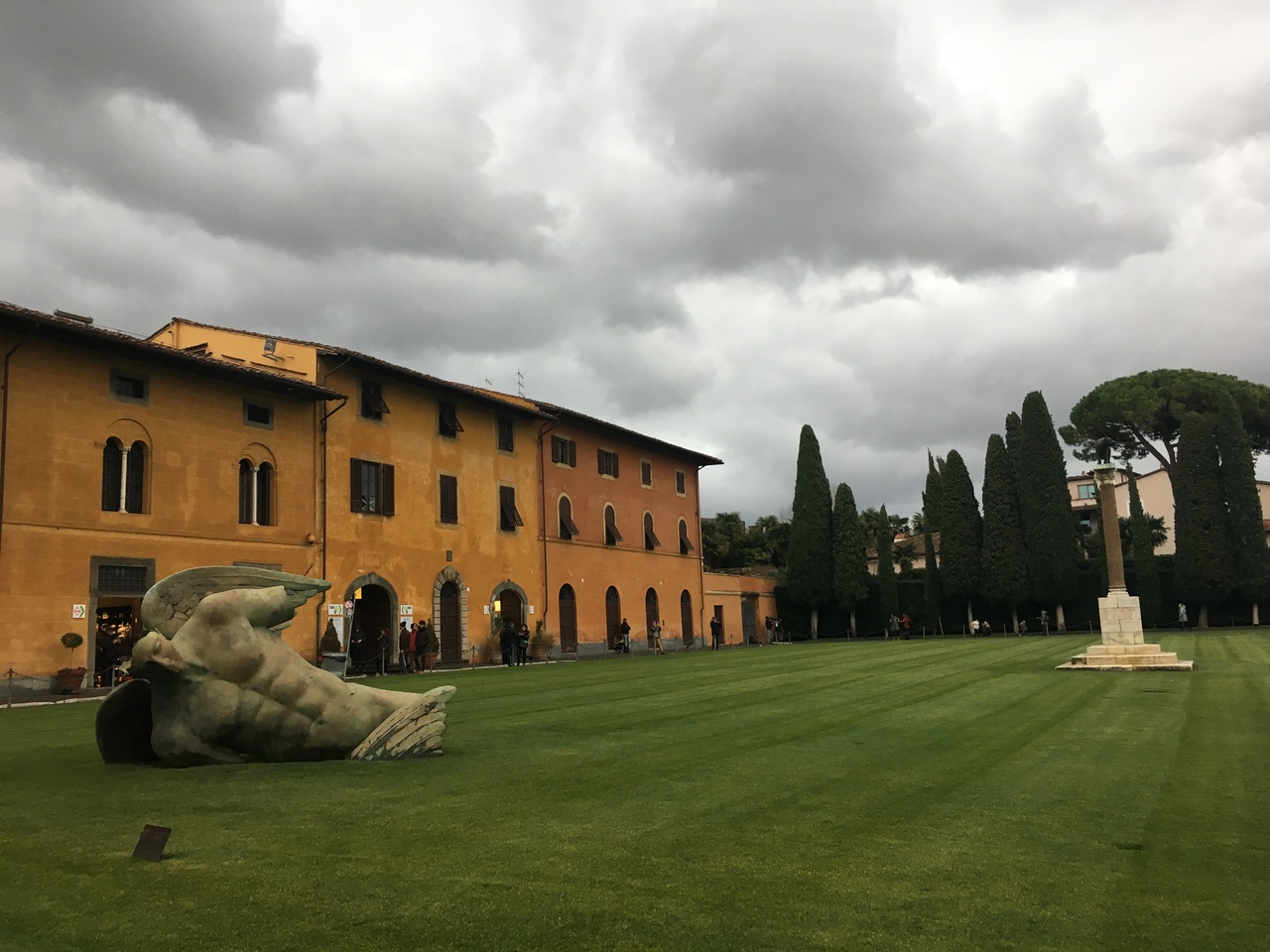 ドゥオモ広場には有名なピサの斜塔の他、ドゥオモやシノービエ美術館、洗礼堂などがあり見所満載でした。広場では写真撮影している人が多かったです。オフシーズンと悪天候が重なり、観光客は比較的少なく見やすかったです。