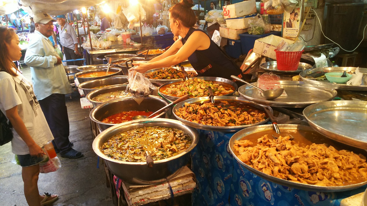 タイ国鉄の駅は、列車の発着が無いときは、食事をするのがメインの屋台村のような状態となっていますので、駅とセットで訪れると、良いと思います。