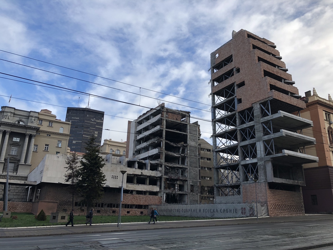 ベオグラードと言えば、民族浄化が激しかった1999年にNATOから空爆を受けた街であり、その惨状は対外的には政治的なメッセージを、国民向けには団結の恥辱と象徴として、空爆を受けた旧国防省の建物が残されています。目の前で見ると迫力を受けるものであり、ベオグラードでは必ず観るべきものと思いました。