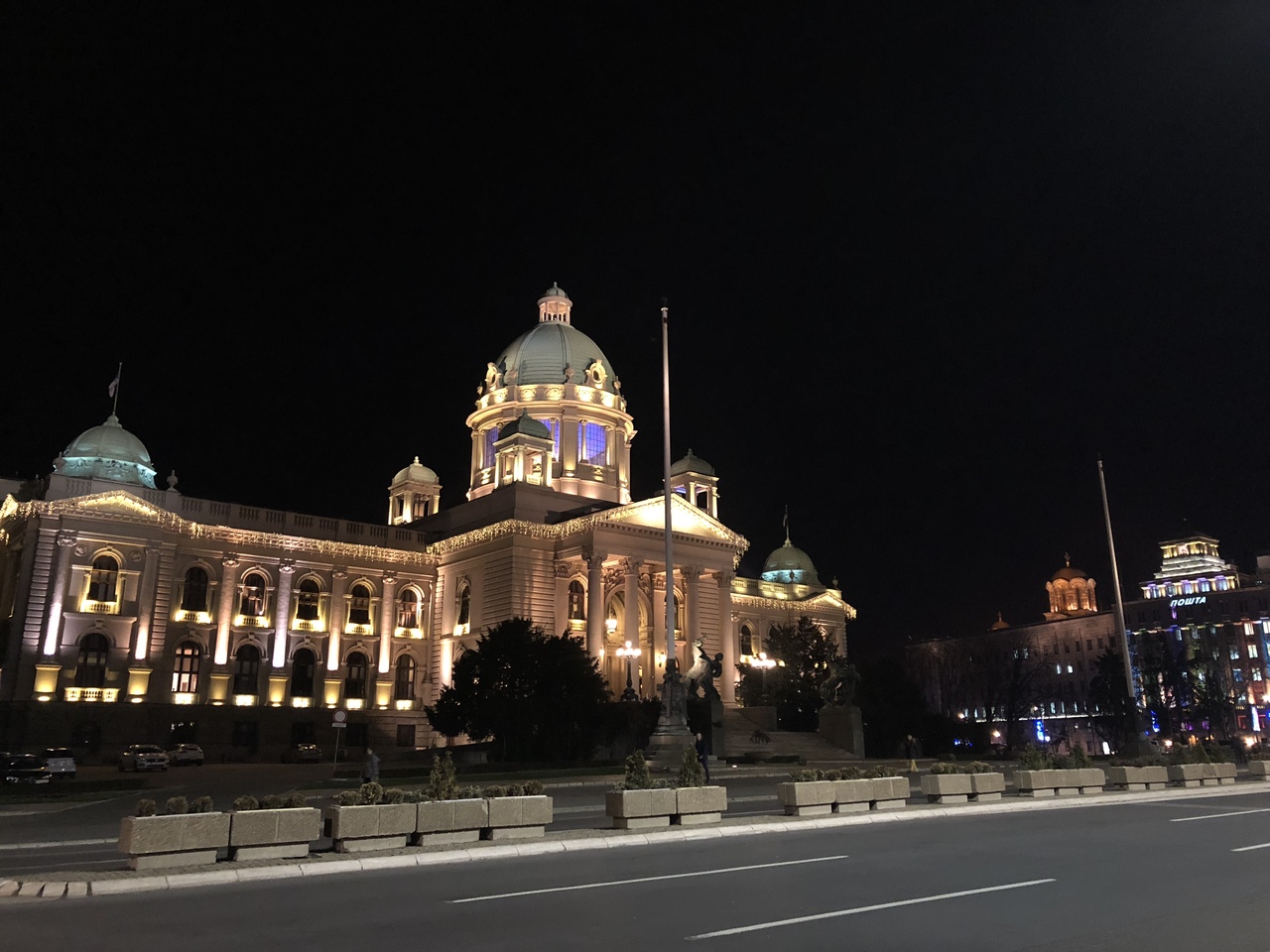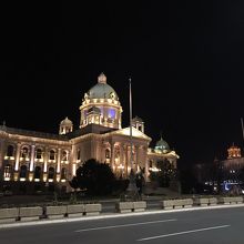 ベオグラードにあるセルビア共和国の国会議事堂です。見るからに西洋の建築であり、写真を撮るのであれば日中帯もよいのですが、電飾の輝く夜景を取るのがお勧めです。そこまで大きな建物ではなく、歩けば5分程度で一周できるような感じでした。