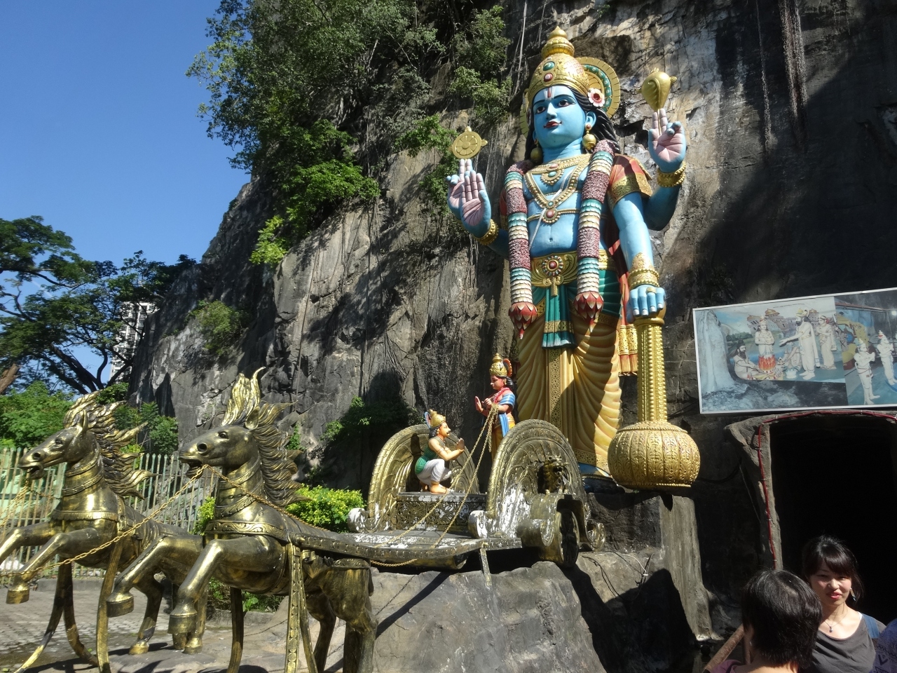 KLセントラル駅からバツ-洞窟までの電車の切符を買ってコミューターで30分ぐらいで行きました。終点の駅から大きな銅像が見えるので、道に間違うことはありません。最初の洞窟では、中にいろいろな展示物があり楽しめました。その次は、270段ほどの階段があり、必死で登ると拝観できました。ヒンズー教徒でなくても見る価値はあると思います。帰りは、始発の電車にもかかわらず、電光掲示板に出ている時刻には、全然電車がきませんでした。日本とは違うんだとあきらめて待つしかありませんでした。とんでもない時刻に電車がきてなんとか帰れました。ツアーを利用するのもいいかもしれませんが、自分たちで迷いながら切符を買ったり、時刻表のない電車を利用するのも旅の醍醐味かもしれません。