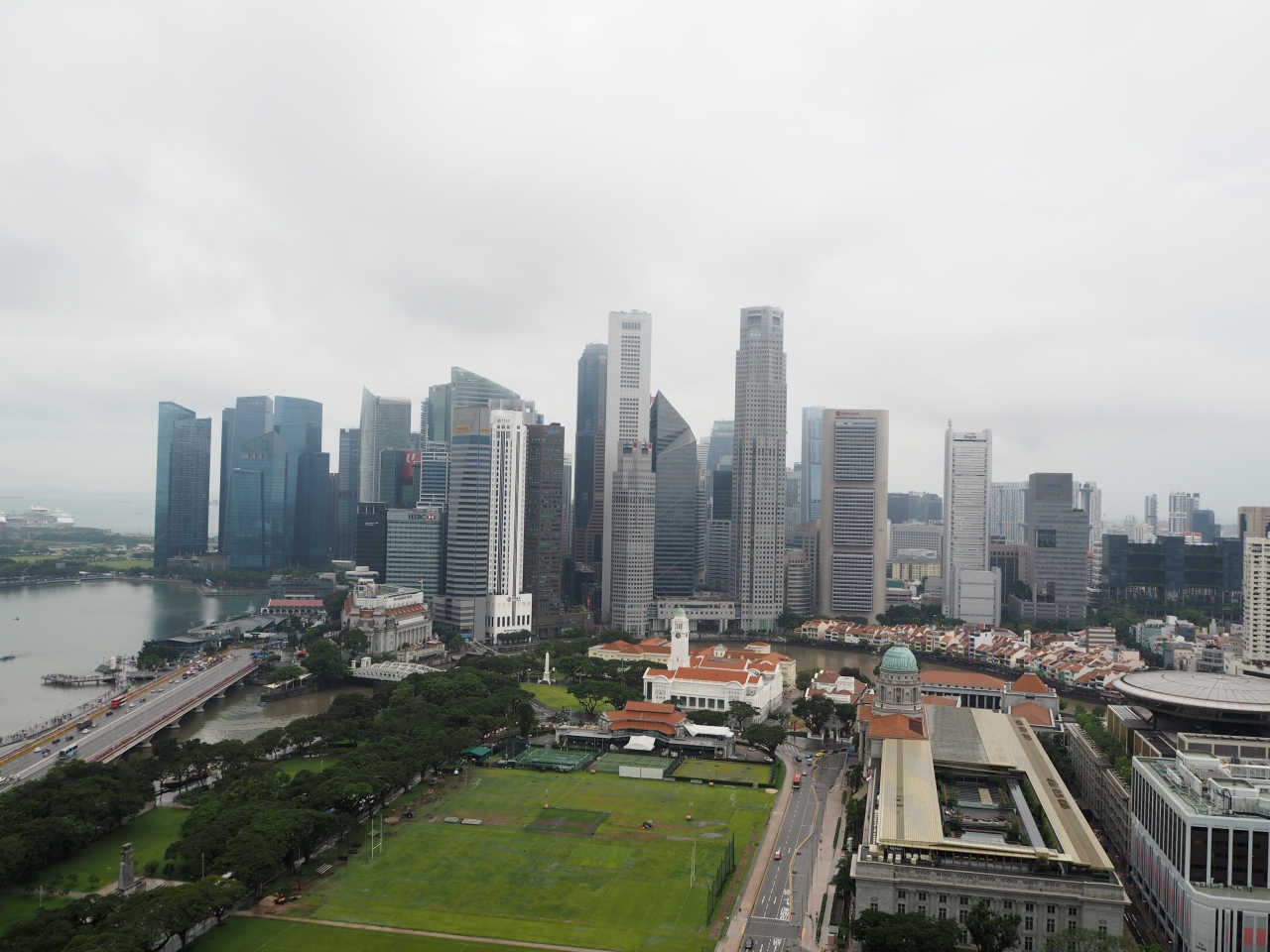 マリーナベイ沿いの一角にある高層ビルが立ち並ぶ金融街です。この一角に高層ビルが終結している様子は圧巻でした。基本的にはオフィスが入っていますが、最上階などに展望レストランが入っている建物もあり、素敵な夜景が楽しめました。