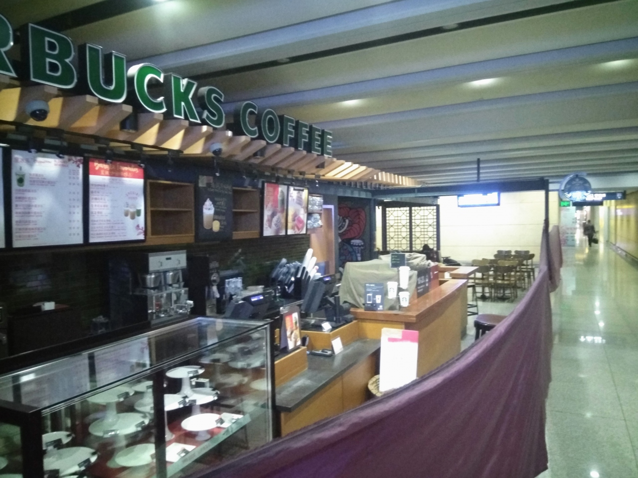 乗り継ぎ等で一晩過ごす事が必要なった時に参考にして下さい。一般的にはB3旅客休息区。欠点は冬は超寒い事と椅子には仕切りがあり横になれない。(小柄の人を除く) 有料だったらカプセルホテルが有りますが高い。時間帯にもよりますが最低88元。そこで見つけました。到着階B2から上を見るとB2(到着階)とB1(出発階)の間だと思いますがガラス越しにソファーが見える場所があり、そこに向かいます。そこは閉店後のスタバ(閉店後でカーテンが下がっていますが大丈夫です。)とトランジットパッセンジャーラウンジです。ここは混雑してなく、B3に比べると天国です。