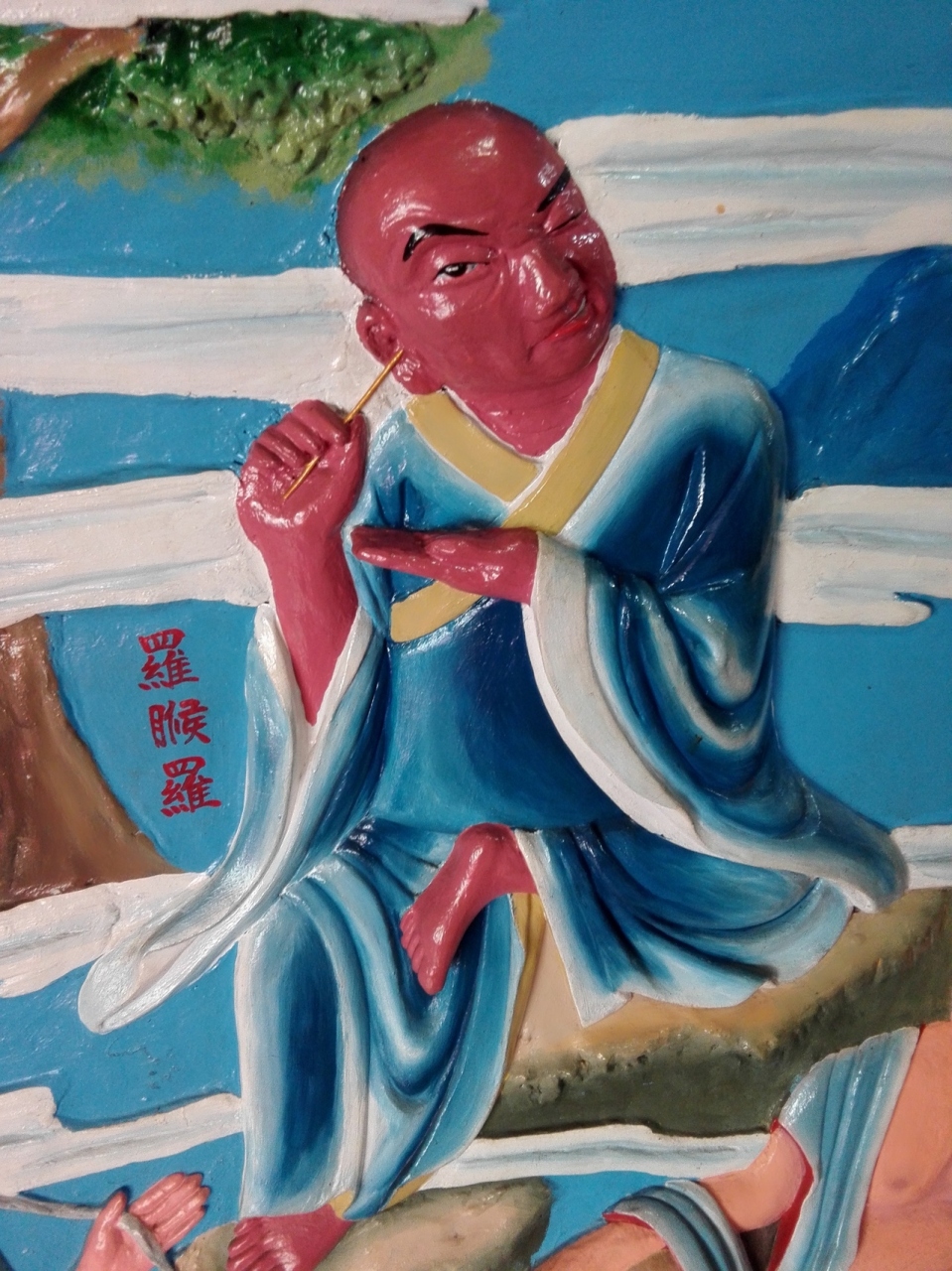 すぐ隣の『龍虎塔』があまりに有名な為、時間が限られているツアーの旅行者にはあまり知られていないかもしれない、更に巨大な龍のオブジェの『春秋閣』です。内部には様々な神様たちの神話が壁に描かれていて、いくつかシュールなモノもあるので紹介します。