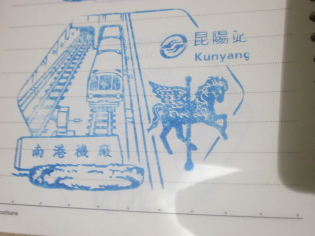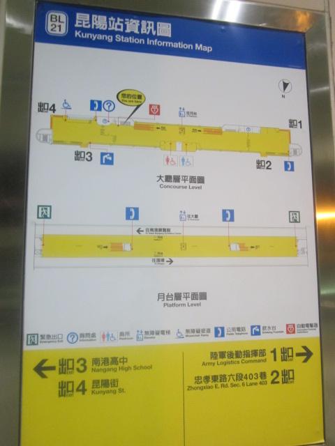 この駅でスタンプを押して気付いたのですが、この駅の最寄には南港機蔽(日本語で言うところの車庫みたいな意味かしら?)があって、MRT車両の基地となっているようです。駅の出入口案内にも車庫のことが記されていて、内部見学がどのような形で可能なのかはわかりませんが、取り敢えずはアクセス的には容易なようなので、鉄道好きな方は立ち寄ってみるのも良いかと思います。尚、淡水方面に向かうレッドライン上の北部、復興崗駅の傍にも同じような車両基地があって、レッドラインの北部エリアは地上走行なので、この基地の様子がよく車窓からも眺められますので、併せて楽しまれると良いかと思います。