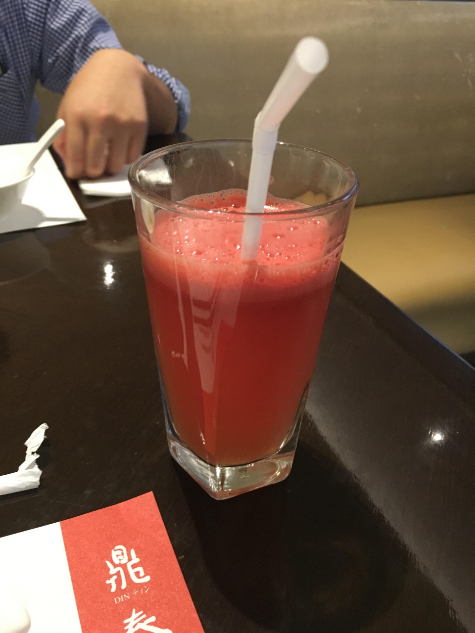正大広場の中に入っている鼎泰豊です。アジアにたくさん出店していて日本にももちろんありますが、安心して入れるお店のため入ってみました。上海の小籠包の価格帯ではこちらは少し高めのお店に入りますが、1つ100円程度なのでそこまで高くはないと思います。店内もとても綺麗で安心して誰でも使えるお店だと思いました。スイカジュースがおいしかったです。
