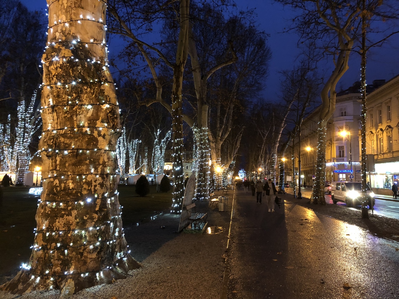 緑の多い広場ですが、訪れたクリスマスから正月にかけては夜のイルミネーションがとても美しい場所でした。また、クリスマス市も開かれており、ロマンティックでした。ザグレブ中央駅から旧市街方面に延びる細長い広場であり、市民の憩いの場になっていました。