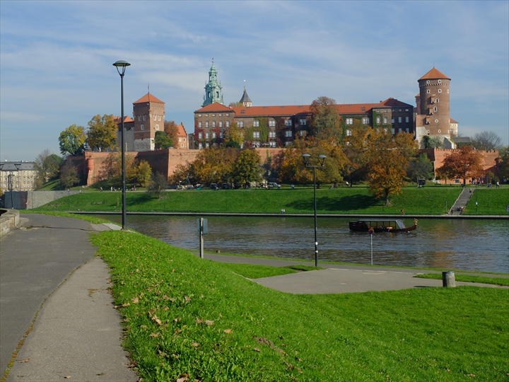 城は、敷地内に入って間近に見る大聖堂などの外観も素晴らしいですが、ヴィスワ川を隔てて眺める全景も美しいので、気候・天候がいい日にお時間がある方は川沿いの遊歩道の散策も楽しみながら行ってみるといいですよ。