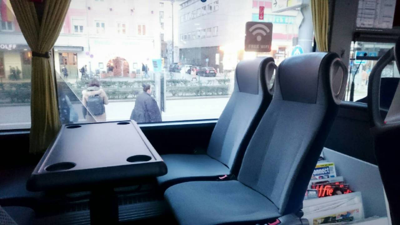 バスの中は無料wifiもあり、快適に町中まで移動出来る手段です。