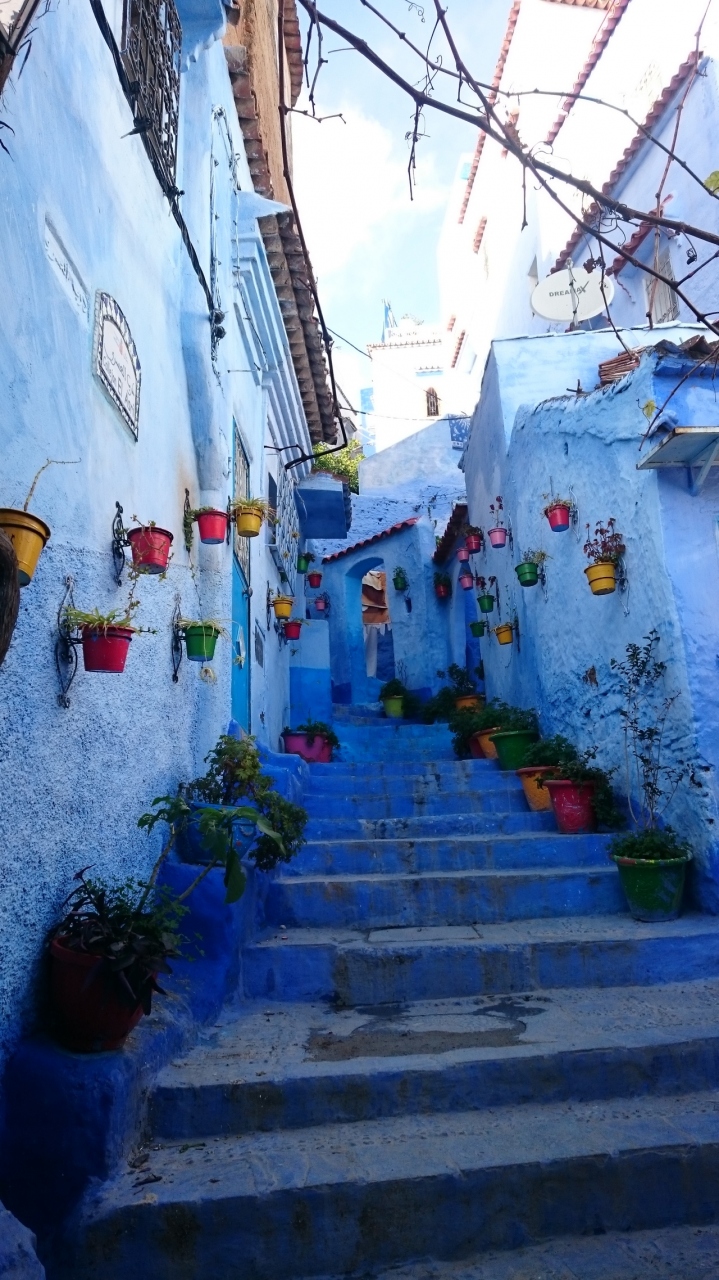 徐々に歩いて行くと雑誌やインスタで見た青一色の一画にたどり着きます。疲れた心が洗われるような場所です。結構長い道のり、緩やかな坂道や階段を上がったり下がったりするのでスニーカーやローファーの靴がお勧めです。歩いている途中可愛い雑貨店がかなり沢山ありましたがツアー移動なので見ることができませんでした。