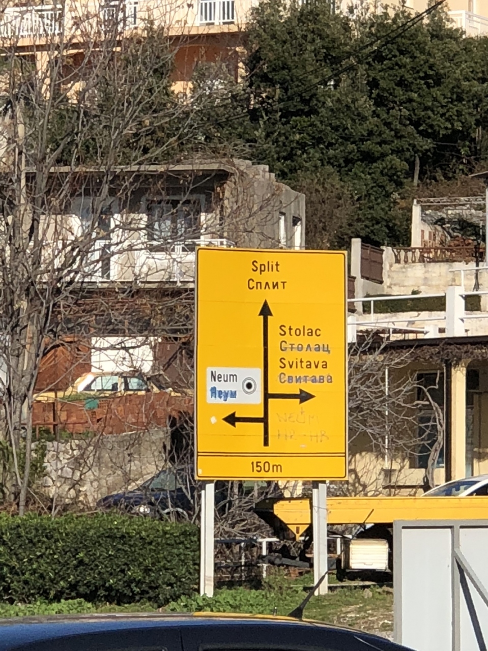 海辺の道からネウムは南北2度クロアチアとの国境を通ります。パスポートは忘れず手元に。