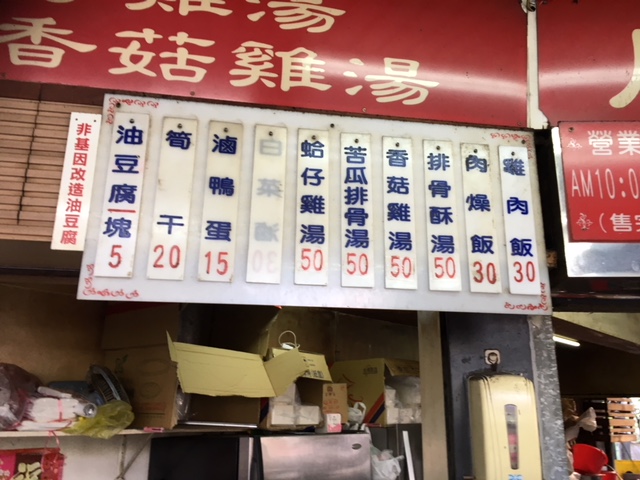 雛肉飯と肉燥飯は大が45元、小だと30元、スープ類は50元ですので安いです。