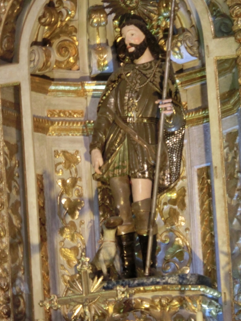 足元にパンをくわえた犬を従えた聖ロケは、ペストから守ってくれる聖人です。
