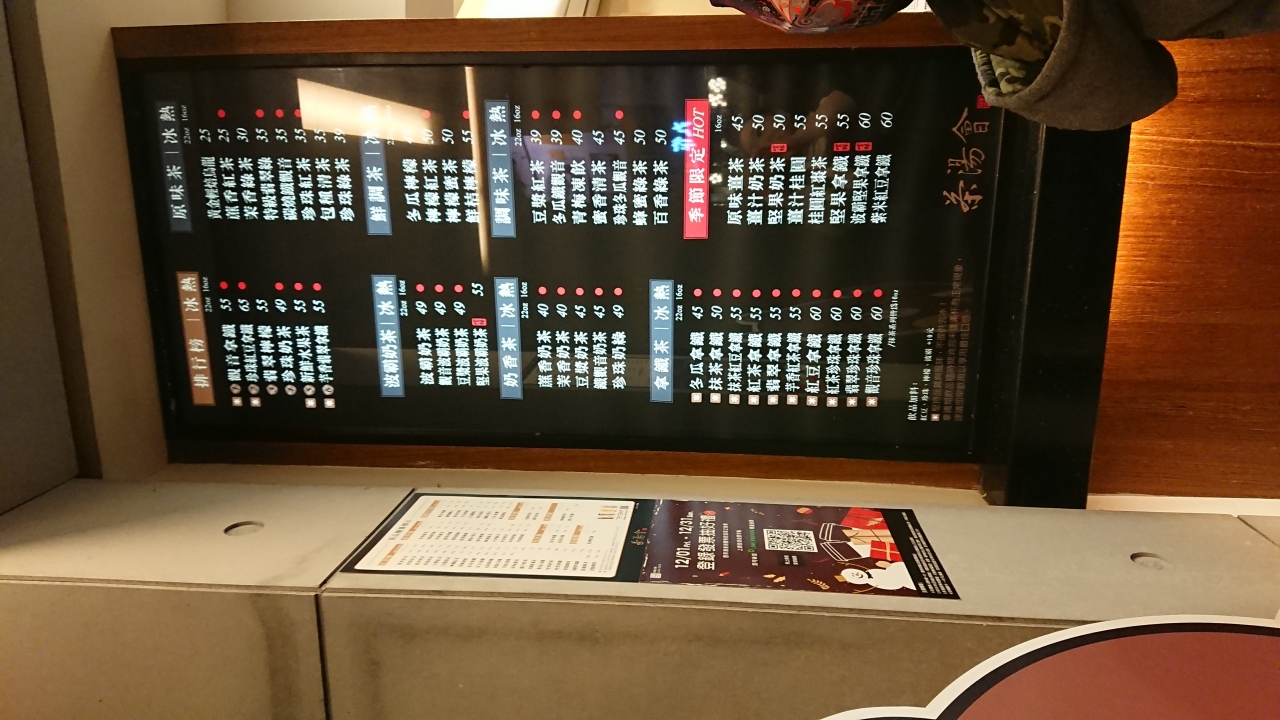 日本語のメニューを出してくれました。スタンダードなお茶にしましたが、氷の有無(確か甘さも)を選べます。ホットもあります。
