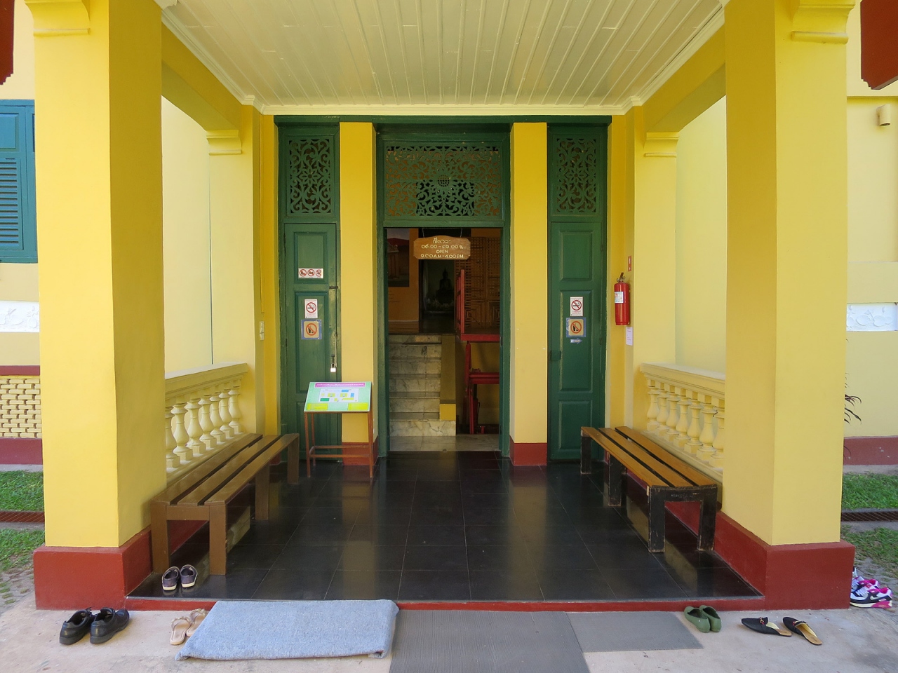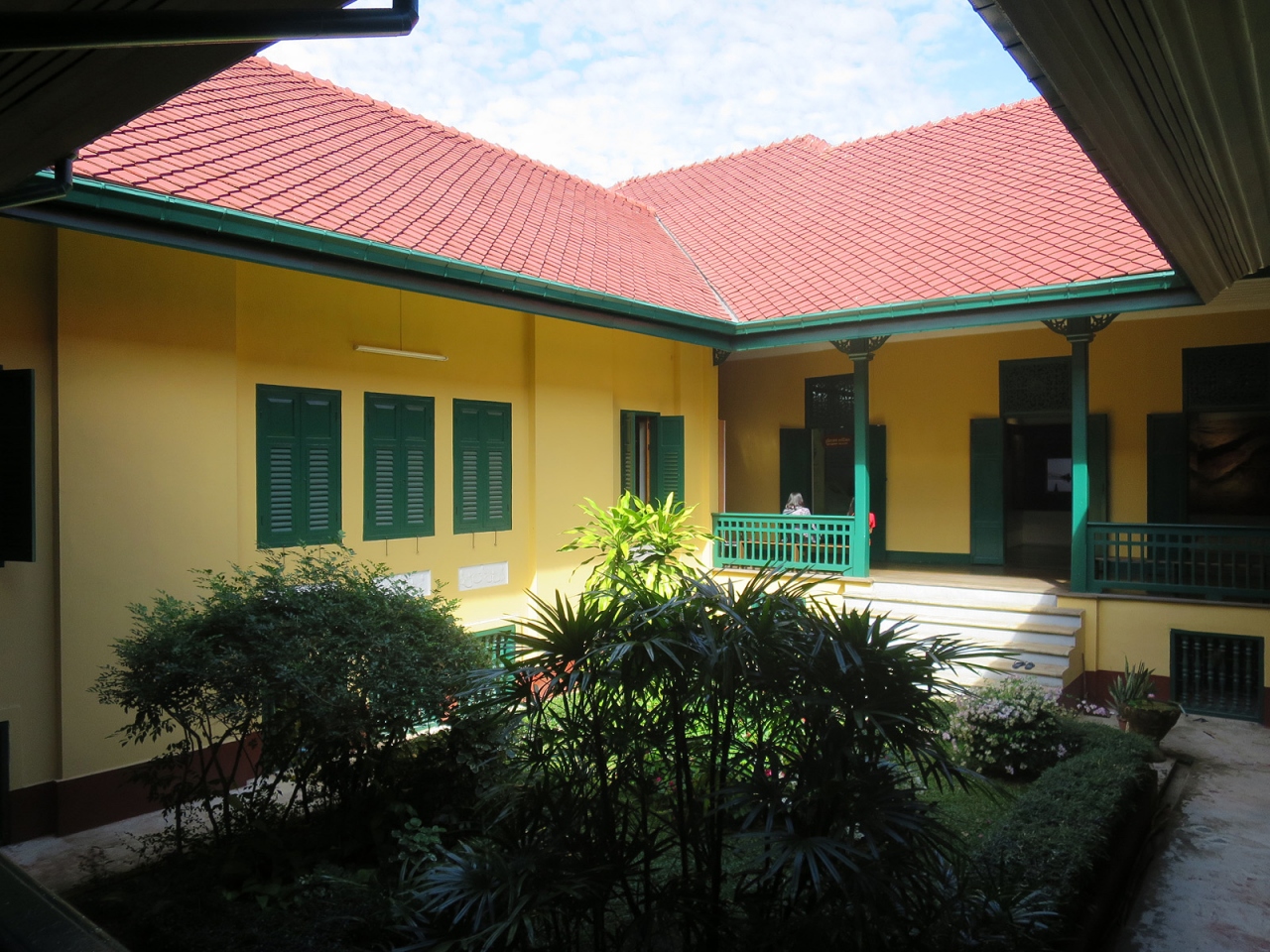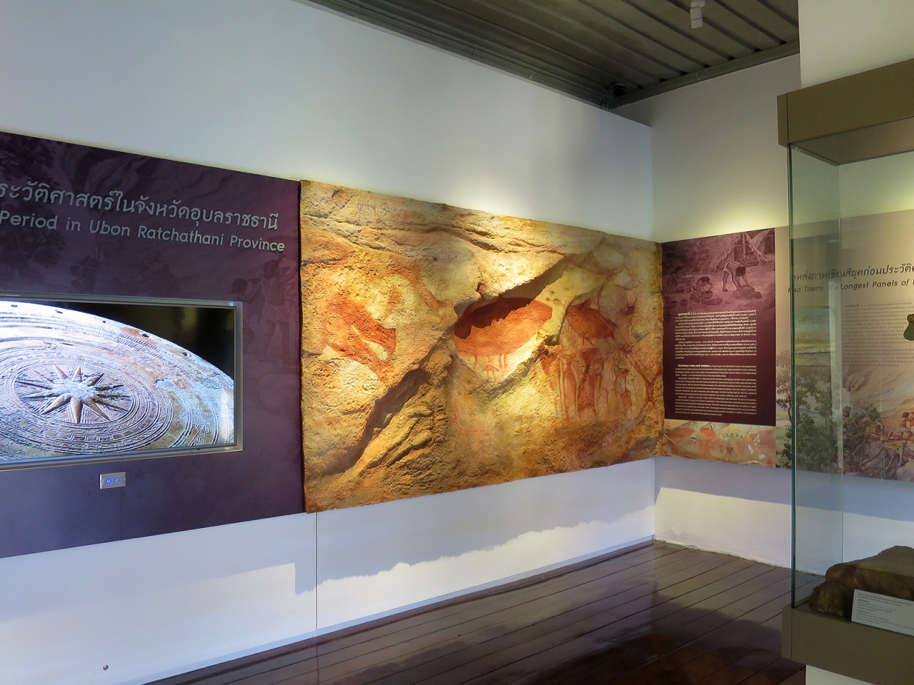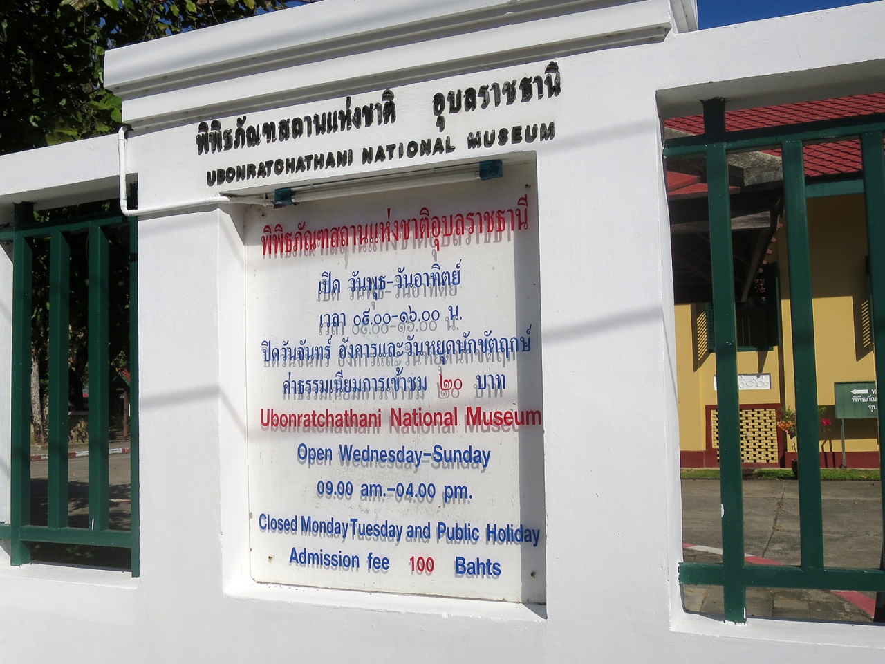 博物館の敷地に入り、左奥へ回り込むとチケット売り場があります。売り場のオバちゃんは髪を見ながらピンセットで白髪を抜く作業に勤しんでいましたが、私が「1人です」と伝えると「日本人?」と尋ねてきました。来館者の統計を取っていると考えることもできますが、外国人料金の適応の確認かもしれません。ちなみに入館料は100THBでした。入口で履物を脱いで館内に入ると、若いお姉さんがチケットに鋏を入れてくれます。かつて市庁舎でもあった建物はあまり広くはありませんが、内側に庭のある回廊式で趣きがあります。もちろんエアコンはありませんが、乾季でもあり、日陰というだけで涼しく感じられました。展示テーマは歴史・民族で、パー・テムにある先史時代の壁画のレプリカもありますが、古代の石像の数々は、その分野に疎い私であっても「凄いなぁ」と思わせるものがありました。また展示品の見せ方も西洋式で、ほとんどの展示品はガラスケースに入っておらず、見学者の善意にまかせる方式でしたが、お国柄ですね。また展示室や展示品の中には経年劣化や傷みが目立つものもあり、もう少し整備が必要だと思いました。あっ、屋外にも展示品がありますので、見逃さないようお願いします。