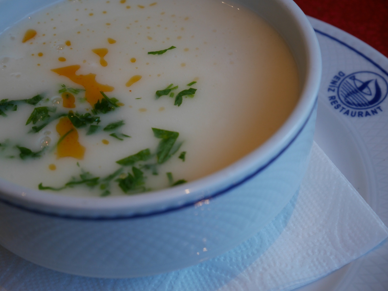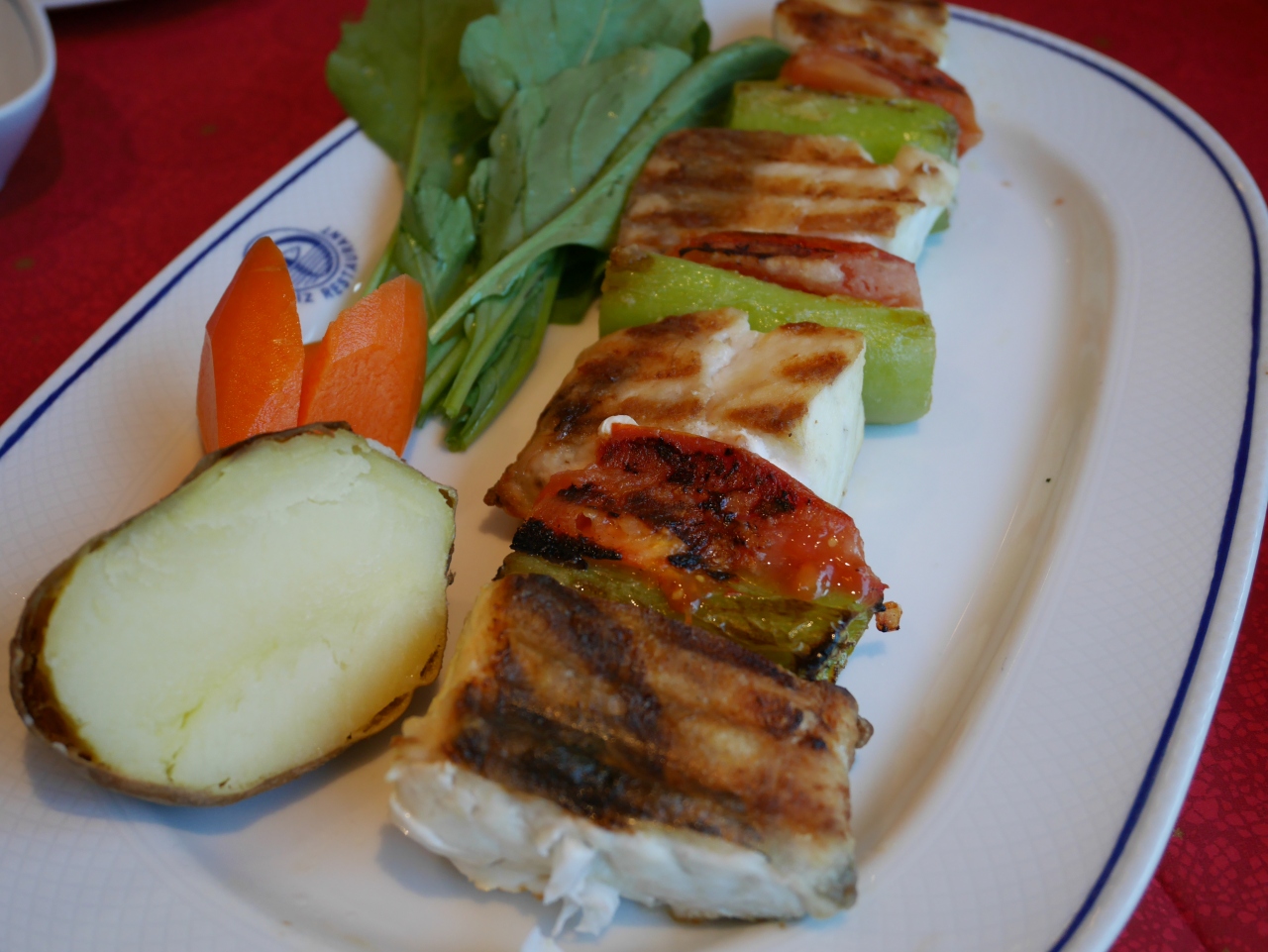お魚スープ2皿、イカの冷菜、エビのグリル(4匹)、バルクシシ(シシ・ケバブのお魚版)1皿を2人でシェアして、確かチップを入れて150リラ(約4500円)いかなかったと思います。その時は時価のお魚を注文しなかったので、思っていたよりもリーズナブルに収まりました。