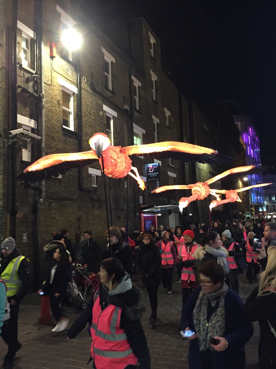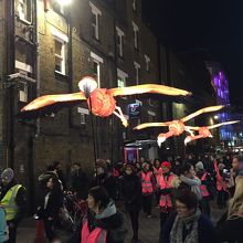 ちょっとした催しをやっていたようで、光った鳥の作り物が練り歩いていました。