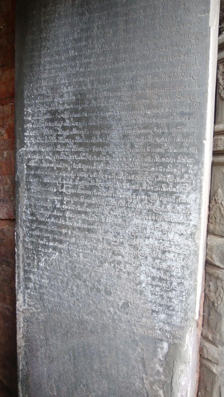 アンコールワットより250年ほど古い遺跡です。祠堂は生憎修復工事中で足場に囲まれていました。サンスクリット文字のレリーフが手彫りとは思えないほどの精緻さでした。