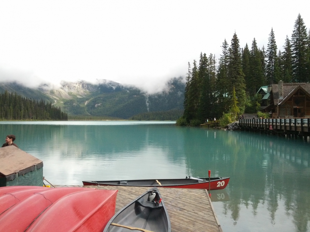 名前の通り、湖面はエメラルド色、ひっそりとした落ち着いた雰囲気の湖です。険しいカナディアンロッキーと針葉樹の姿がエメラルド色の湖面に映り込み訪れる人々の目を引き付けます。 私が行った時は曇りでしたが湖は綺麗でした。 湖の周りにトレイルが整備されてのんびりとお散歩するのにぴったりです。