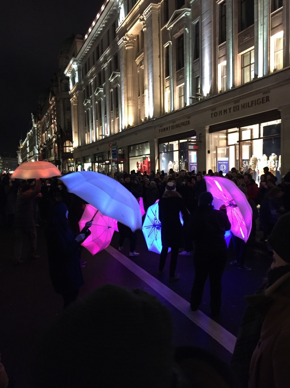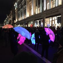 土曜夜に訪れましたが、Picadilly Circus からOxford Circus までが通行止めになっており、カラフルな傘を使ったダンス?や大きな球体が吊るされていたり催しが行われていました。