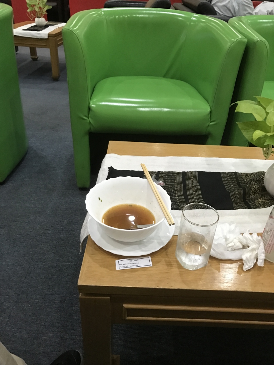 ビエンチャンの玄関口。こじんまりとした空港です。小さなお土産屋さん、免税店、レストランとともにビジネスクラス利用者向けの小さなラウンジもあります。ビール、お酒など一通り揃っています。また頼むとインスタントラーメンを作ってくれます。
