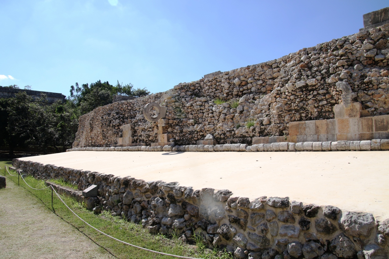 小規模の球戯場ですが保存状態は非常に良くてゴールのリングはきちんと残っています。勝ったチームのキャプテンの心臓を神に捧げたと云う説がありますが事実は藪の中のようです。スペイン人が異教徒のマヤ民族の残虐性を強調してキリスト教に改宗させる口実にしたいためでに自分たちの想像で話を盛った面もあるようです。
