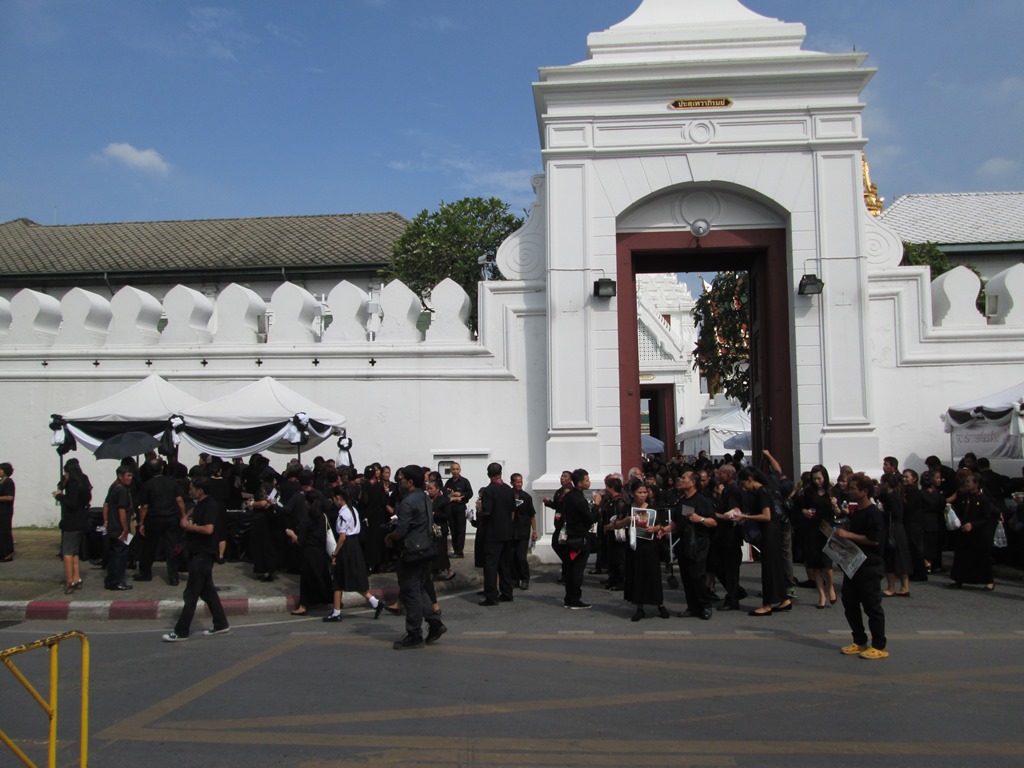 プミポン国王追悼のためにワット プラケオに訪れる人々のために、各種団体が食べ物を無料で提供するテントがありました。もともと王宮周辺には飲食店が少ないエリアで、明らかにお店の数より訪問者の数が多いことから、かなりの数の量が用意されていました。