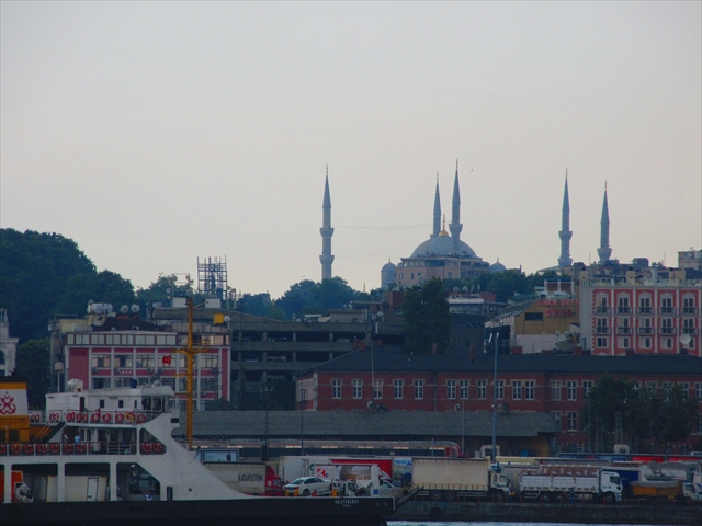 見所は満載で,ボスポラス大橋の下を通って戻ってきます.こちらはショートクルーズで,もっと奥まで行くロングクルーズもありますが,同じ場所を往復するので,ショートで十分かなと思います.イルカの群が泳いでいるのが見えました.
