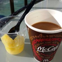 ハワイの朝マックはパイナップルが付いてくるセットになります。