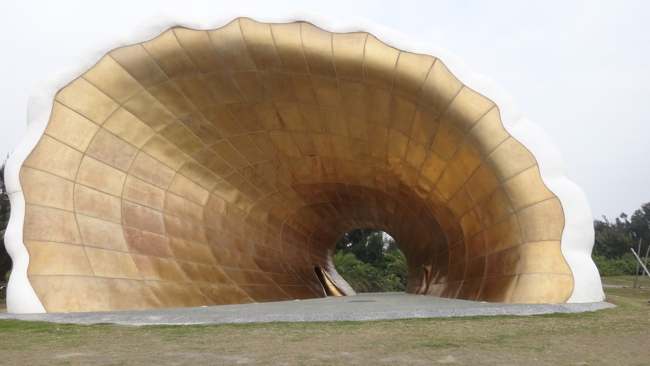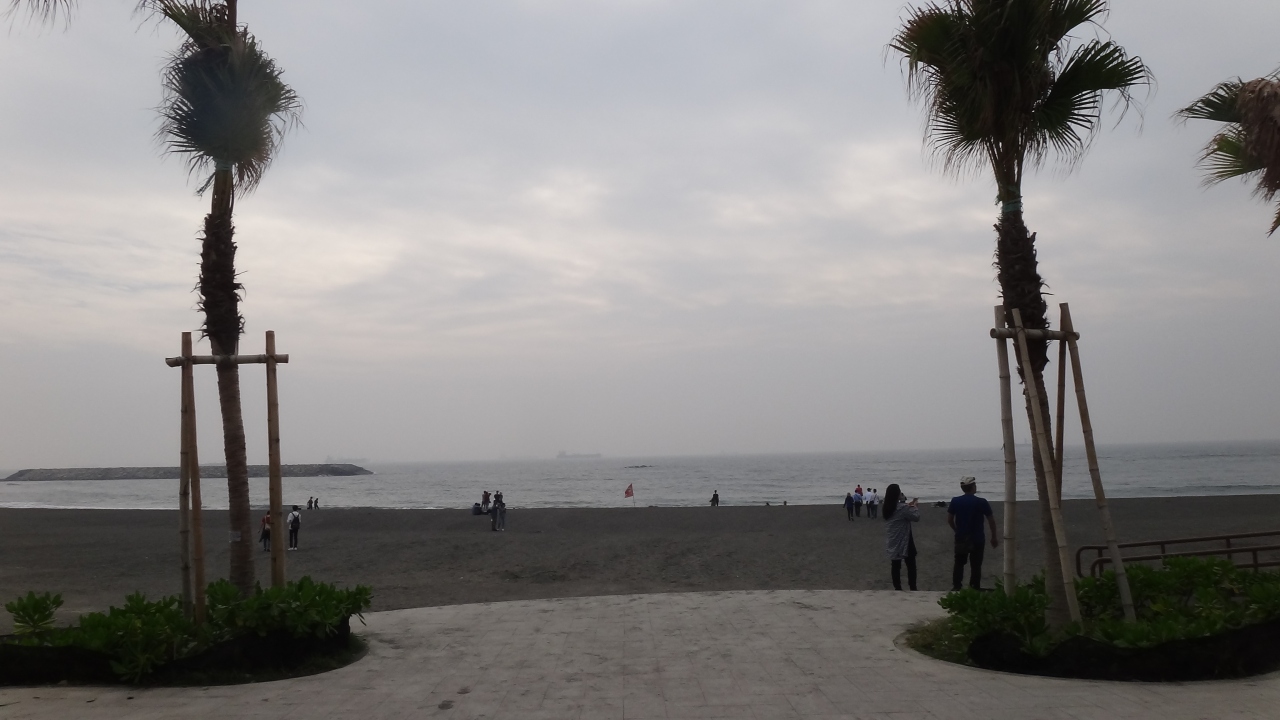 冬の海は寂しい。綺麗に舗装され、所々オブジェや貝殻博物館などある。