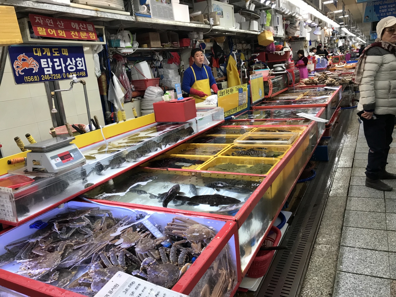 一歩踏み入れると・・・カニ、エビ、タコ、タラなど新鮮な魚介類がたくさん!