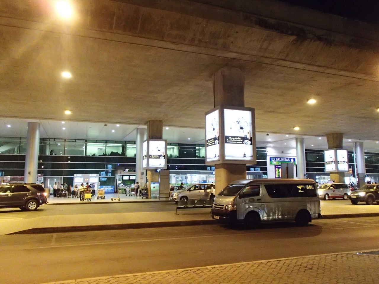 空港の出口から直線距離だと200m位の位置にありますが、専用の通路とかがあるわけではないので、信号の無い交差点を渡ったり、バイクがひっきりなしに走ってくる道路を決死の覚悟で(笑)横断したりで、わずかな距離なのに私は15分位かかってしまいました(汗)。