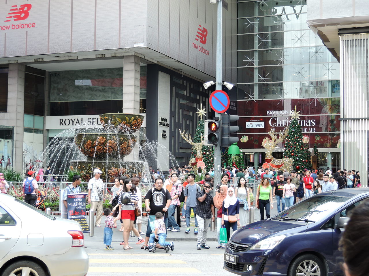 噴水前の道路を挟んで向かい側から、GOーKl無料バス グリンラインとブルーラインとパープルラインにも乗れます。