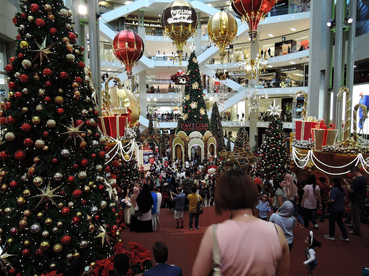 中央吹き抜け部分のクリスマスの飾りつけが豪華でした。