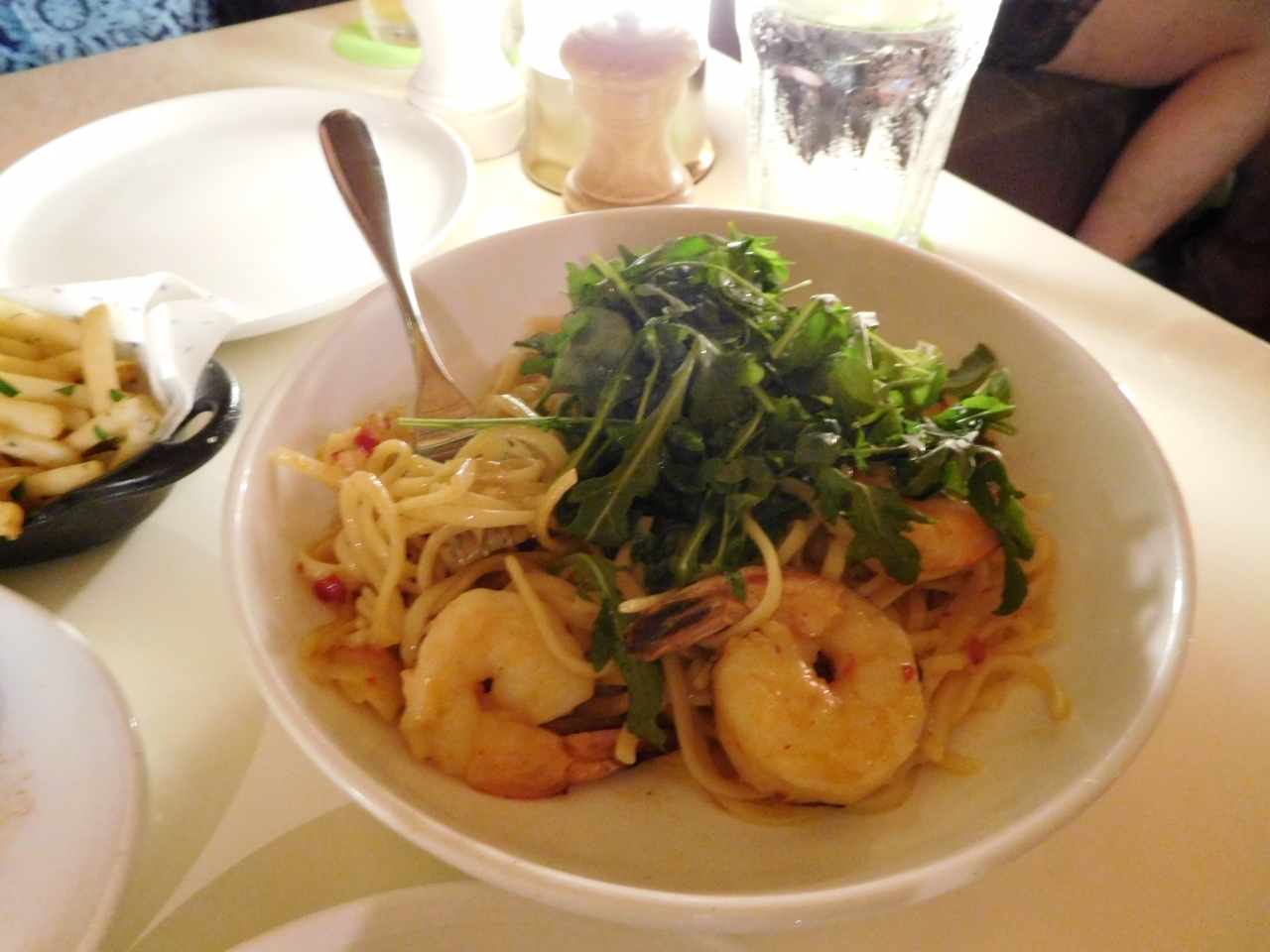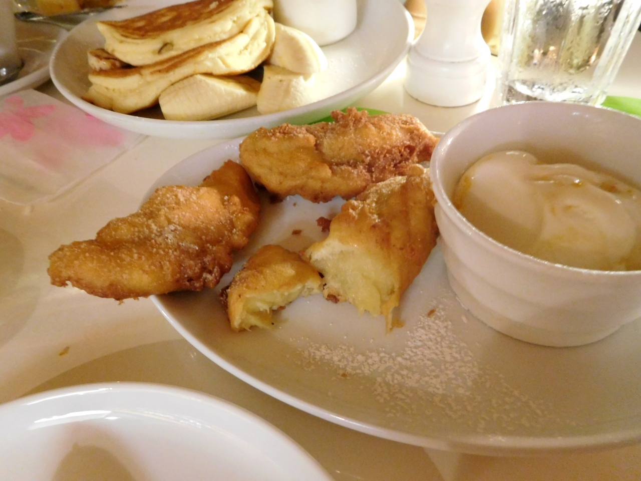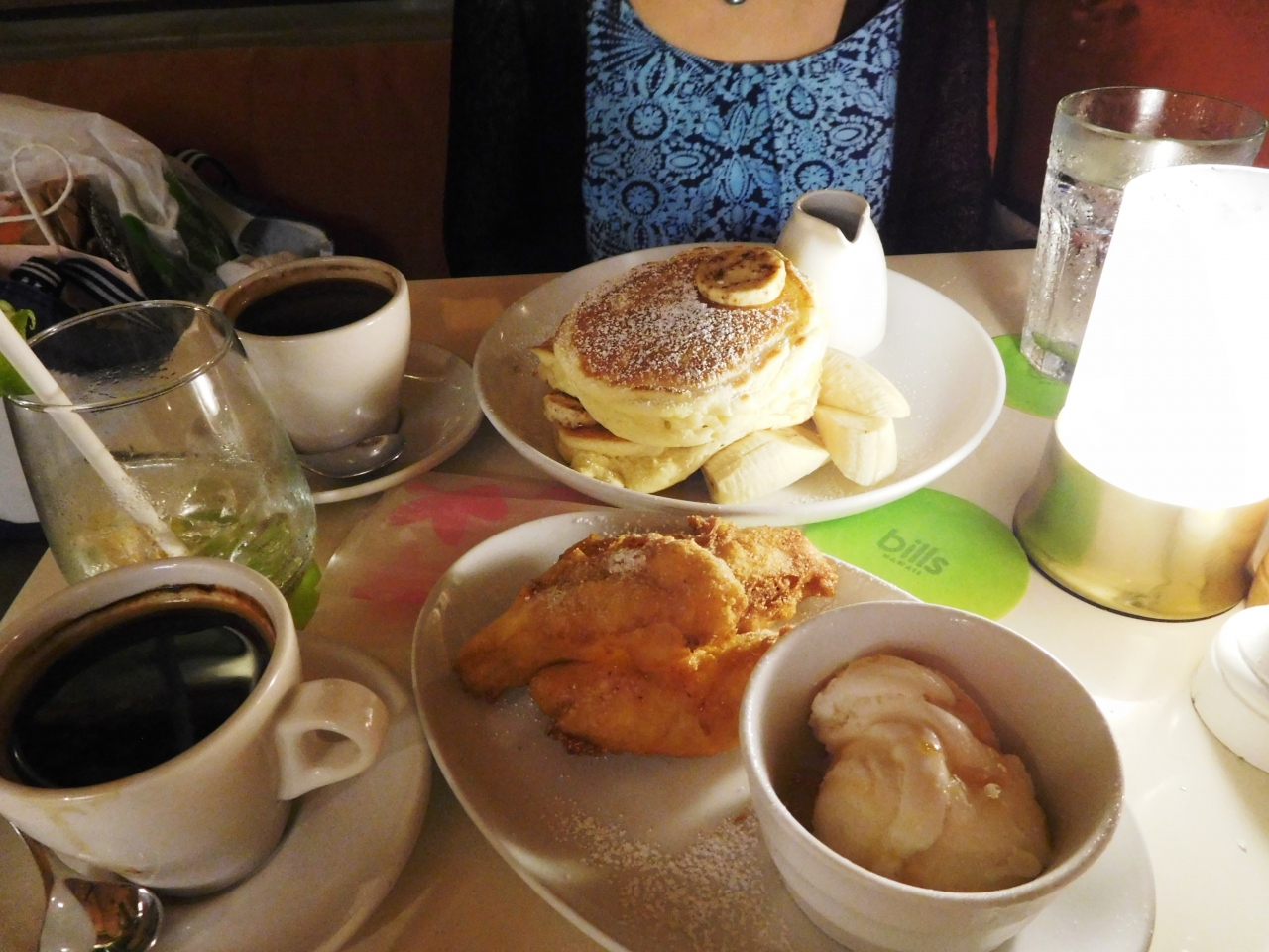 パンケーキをメインとした朝食メニューが人気の店だが、ディナータイムのセットメニューもお手頃価格で内容が充実している。店の売り込みではオーストラリアンキュイジーヌという事だが、雰囲気はアメリカンなダイニングレストランである。この時は58ドルのスペシャルディナーを二人でオーダーし、それぞれが異なるチョイスで楽しんだ。ドリンクはハワイアンレモネードとドラフトビア。前菜はアボガドのサラダとフライドチキン。メインはニューヨークステーキとシュリンプリングイネ。デザートはリコッタパンケーキとバナフリッターアイスクリームで、内容は十分でボリュームたっぷり。味も楽しくいただける美味しさだった。セットのディナーというと、とんでもなく高い相場がワイキキのレストランだが、この店はとても良心的な価格設定だと思う。