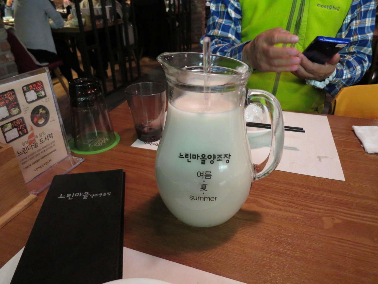 主役のマッコリは,醸造の日数によって春・夏・秋・冬と名付けられていて,テイスティングセットが供されます。…我々は,夏を選びました。