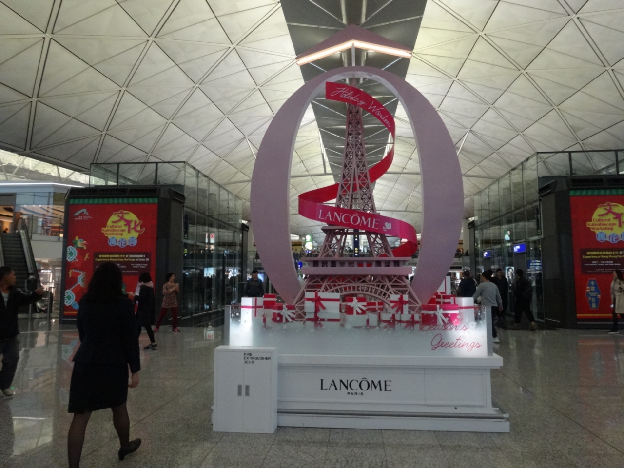 免税店はもっと頑張ってほしいけど、ランコムのディスプレイが今回すごくよくて、私が乗る飛行機のゲート近くにすごくかわいいエッフェル塔のオブジェのようなものが作られていました。