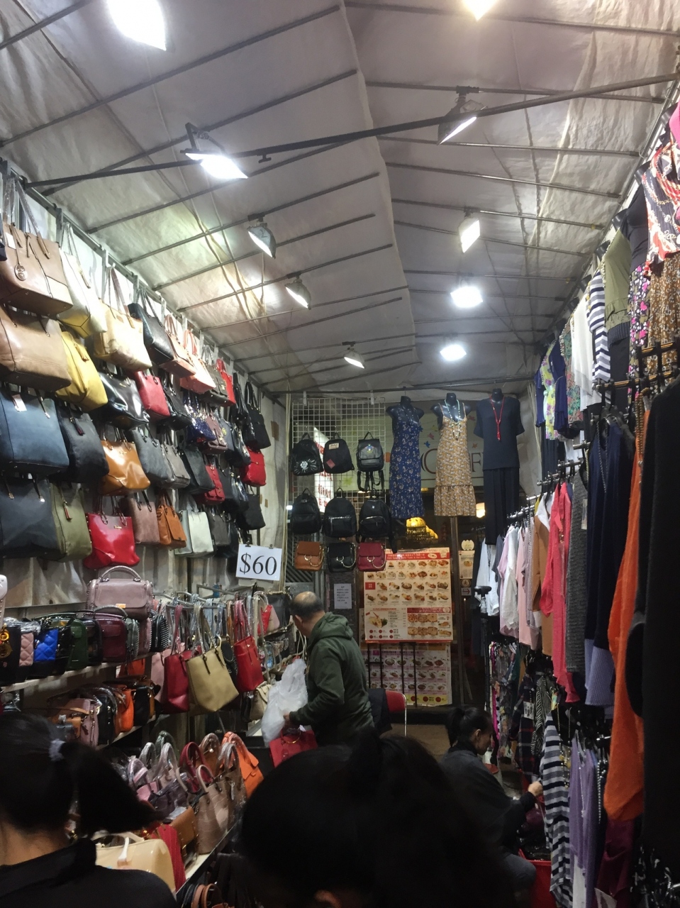 オープントップバスツアーの最後の見せ場として、立ち寄りました。天井高がとても高い露天商の集まりで、売られている商品が女性の好むものであることから、女人街と言われているようです。お店は大きいですが、通路が狭くて歩きにくく、治安の悪いところ街だと必ずスリに合いそうです。ここはそれほど治安は悪くないですが、注意しながら歩きました。