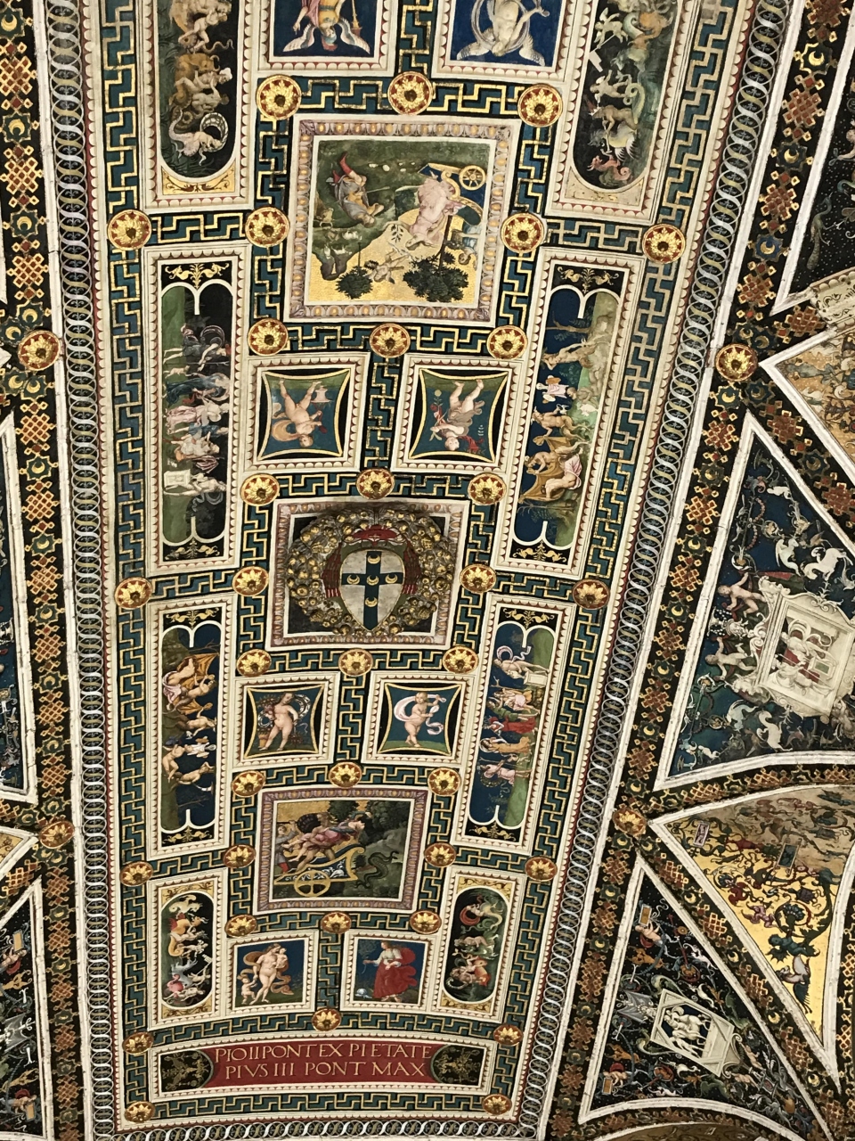 天井画も見事です。真ん中にピッコロミニー家の紋章が見えます。