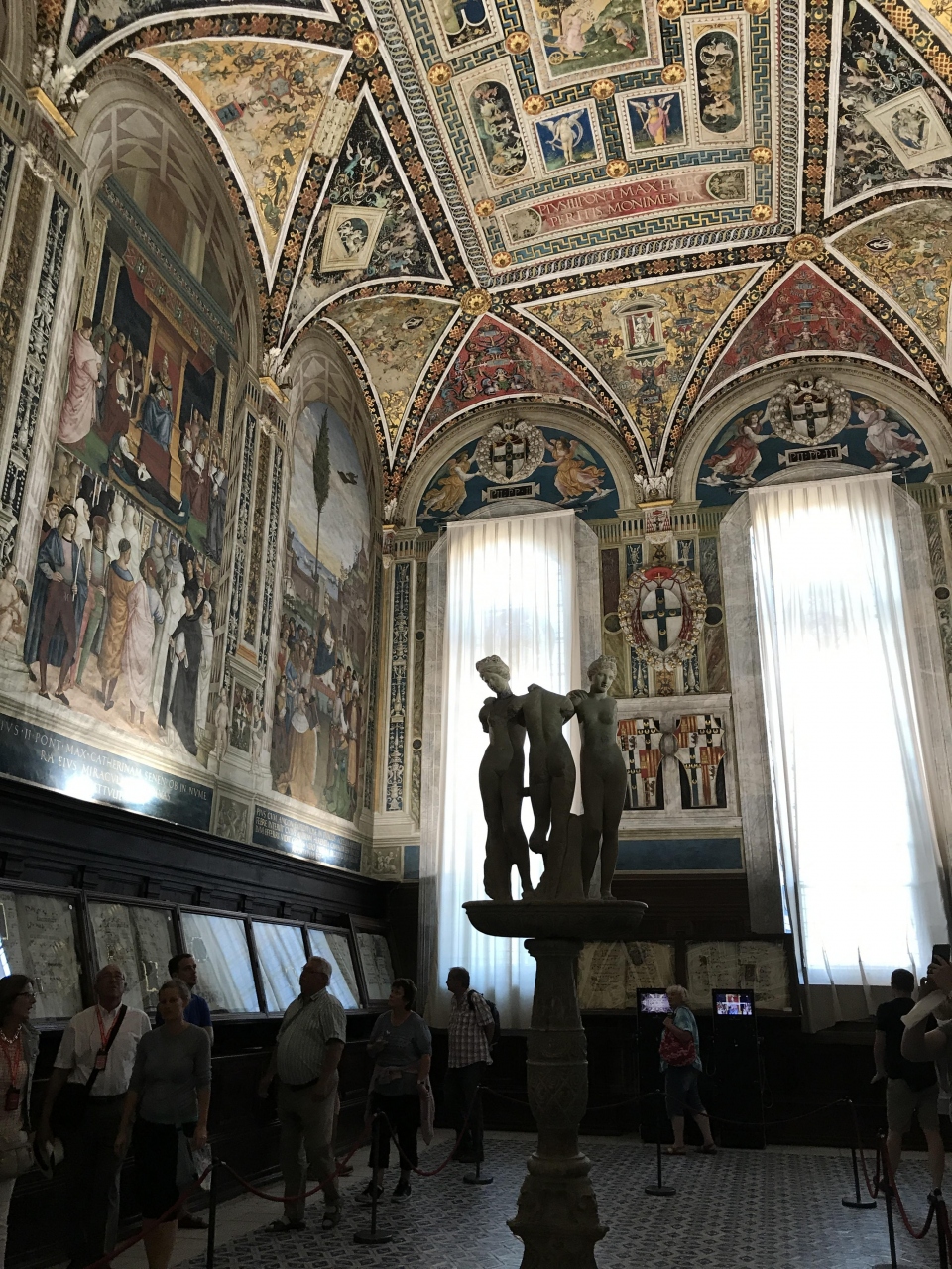 **図書館・11世紀にシエナから始まった名門貴族ピッコロミニー家のピオ2世の蔵書コレクションを、枢機卿だった甥が建造したものだそうです。(のちのピオ3世)