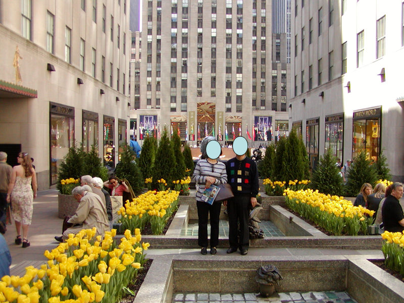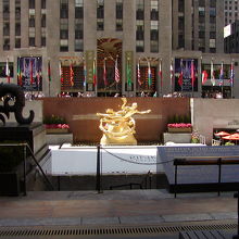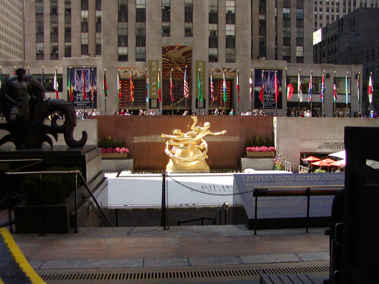 ニューヨーク、五番街に程近くに”ロックフェラーセンタービル”が在ります。通りから両脇にショツピングビルが並ぶ歩道を入ると、奥まったところには広場があり、冬にはクリスマスツリーが点灯して、広場がスケート場になります。”ビル内1階はショツピング街でレストラン街もあり、賑わっています。