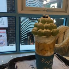 明洞で一際目立っていたここのパフェはフルーツがたくさん乗っているパフェです。私が行ったときには、いちごとマスカットがありました。甘党には嬉しい量だと思います。しかしお腹が空いてなかったのでマスカットを友達と2人でシェアして、二階席で食べました。一つだけの注文でも嫌な顔はされませんでした。フォトジェニックなパフェです。