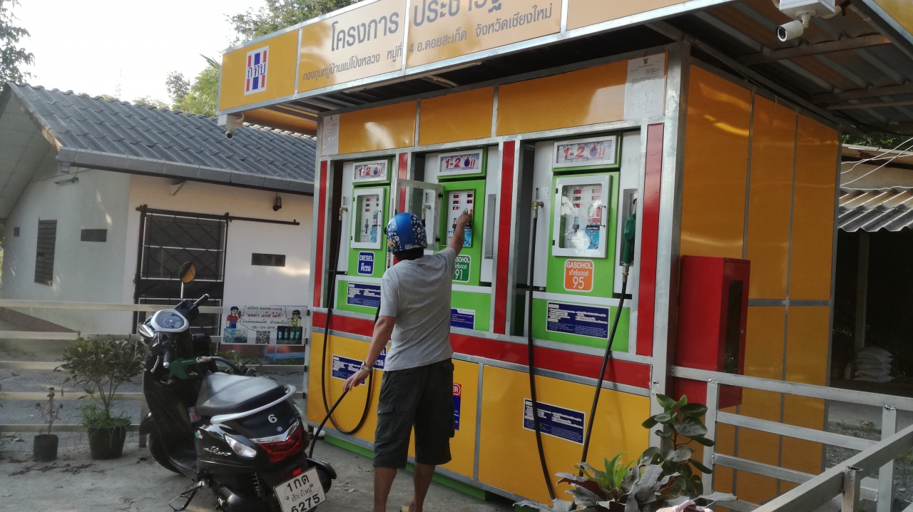 私の場合20km程走ってガソリンが不安になって来たので山中のバイク用無人ガソリンスタンドで100THB分(2.8L)入れました。