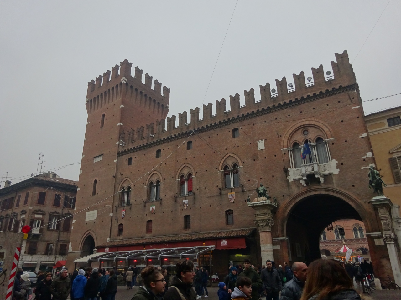 れんが造りのフェッラーラ市庁舎は、サン・ジョルジョ大聖堂の近く、トレント・トリエステ広場の向かいにあります。かつてはドゥカーレ宮殿として使われていたそうですが、今は市庁舎となっています。城壁のような威圧感のあるデザインが良いです。