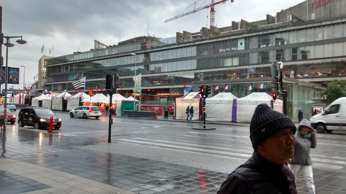 セルゲル広場と文化会館は、ストックホルム中央駅から至近で、訪問時は雨にもかかわらずかかわらずイベント開催中で、沢山のテントがありました。ストックホルム新市街の繁華街という感じでしたが、北欧なので、人が少なく、あまり活気なかったでした。