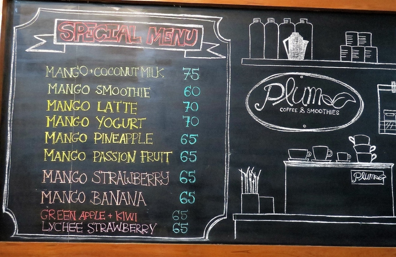 店名の通り、主なメニューはコーヒーとスムージー類。スムージーは、フルーツ単品とミックスがあり。スペシャルメニューとして、マンゴーのアレンジメニューが豊富です。